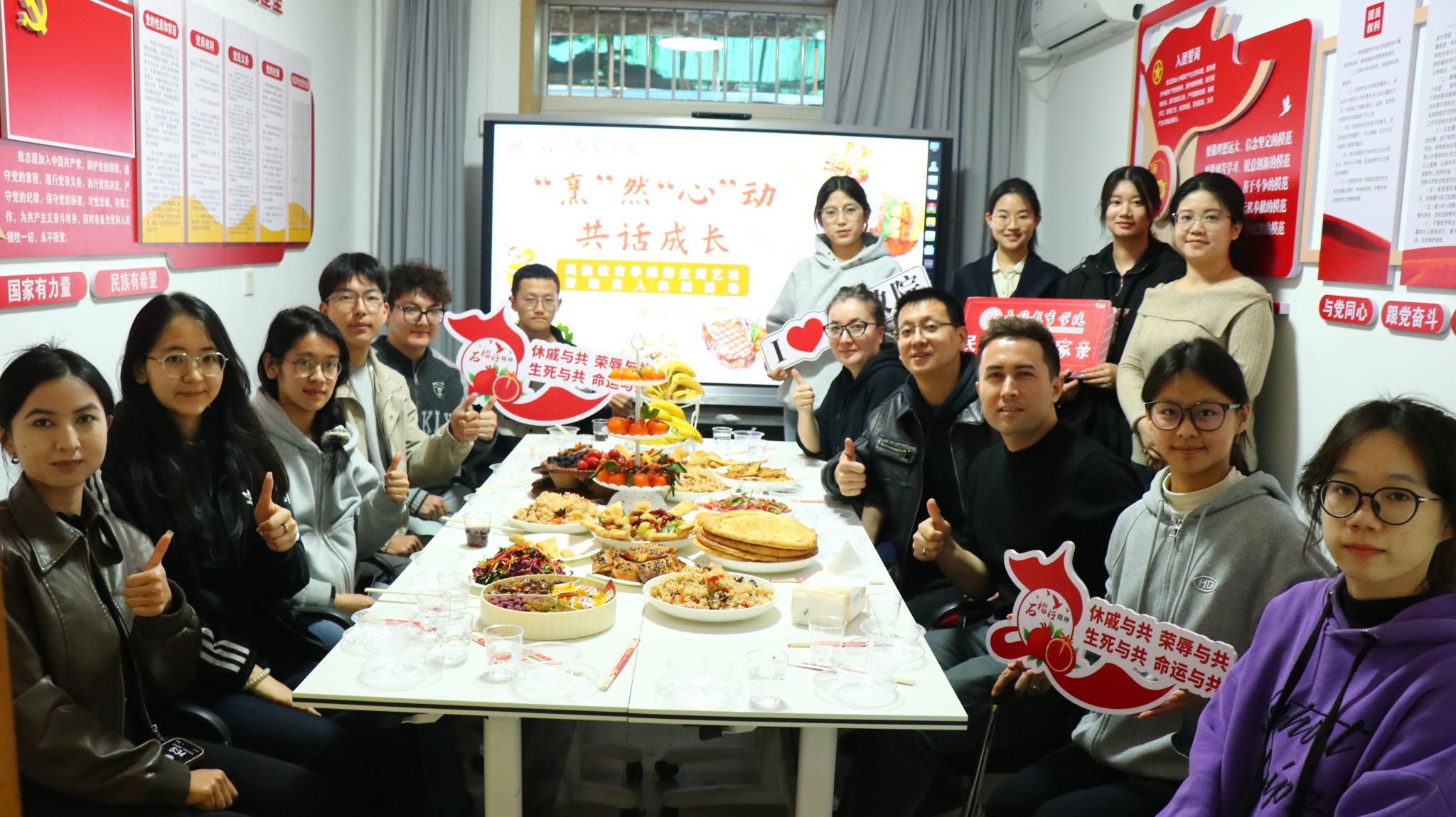 常言美食如诗,每一道菜肴,都是时间与情感的结晶。食色生香,味里乾坤大。在师生厨艺坊的这一餐饭,蕴含着师生之间的浓浓情谊,散发着民族团结之花的芬芳氤氲。品尝着各民族的美食,我们从舌尖上的一饮一啄了解到民族文化的丰富多彩,从餐桌上的一蔬一饭感悟到了辛勤劳动的艰难不易。作为新时代少数民族青年,我们应该砥砺奋进,五育并举,为国奉献,同时也要寻根家乡,弘扬本民族文化,推进民族团结,让石榴花绽放中国大地。