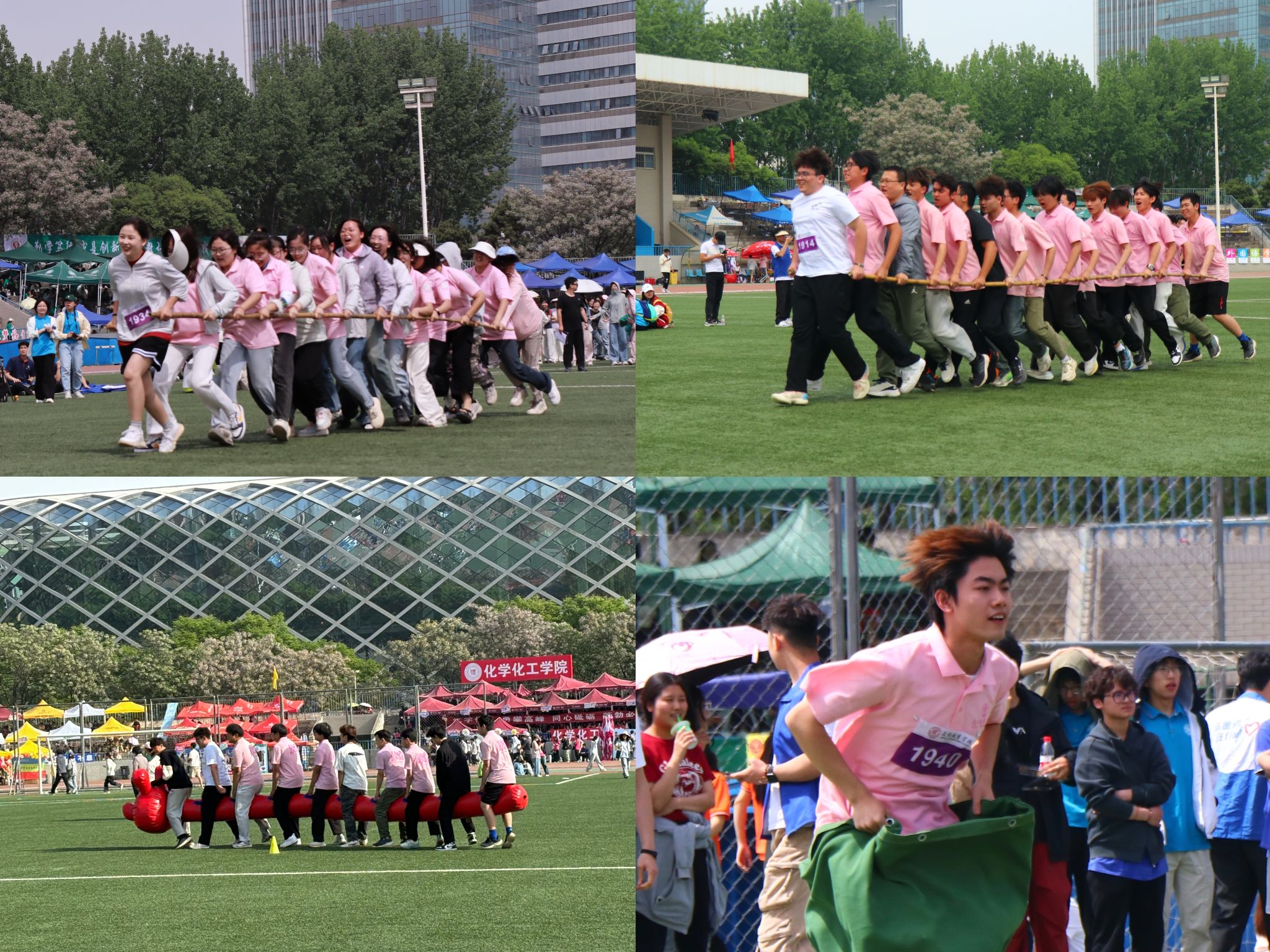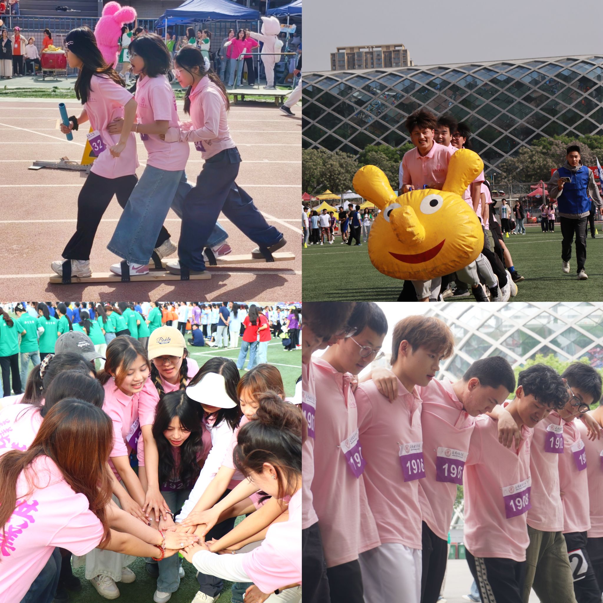 在教职工合力筑塔赛场上,兔子先生