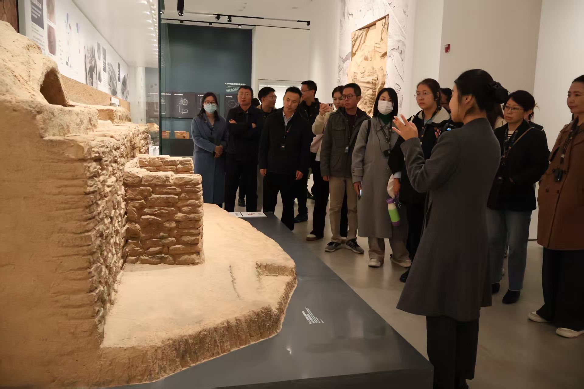 在专业讲解员的引导下,师生们依照“考古历程”“文化谱系”“考古发现”“文保科技”的展陈逻辑进行了系统参观。
