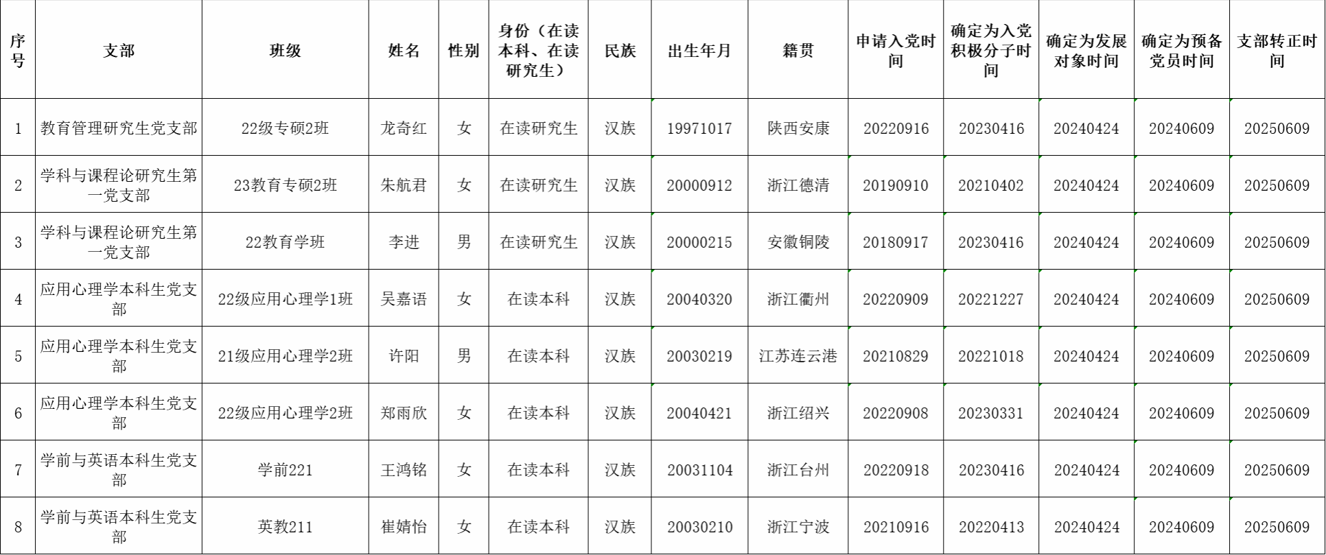 根据《中国共产党发展党员工作细则》中发展党员的文件要求,经对龙奇红等31名同志的预备党员转正条件、转正程序等进行严格审查。2025年6月17日,学院党委会集体审议讨论了龙奇红等31名同志的转正问题。党委委员共7名,实到会7名。经逐个审议和表决,7名党委委员一致认为龙奇红等31名同志已具备正式党员条件,同意批准按期转为中共正式党员,党龄从预备期满转为正式党员算起。具体名单公布如下: