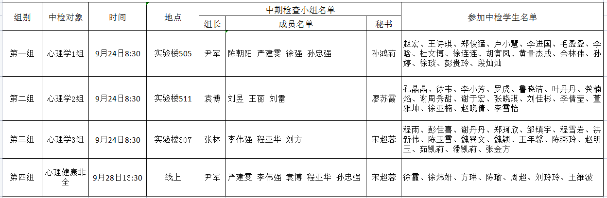 宁波大学教师教育学院2020级硕士学位论文中期检查安排表(心理学、应用心理、心理健康教育)