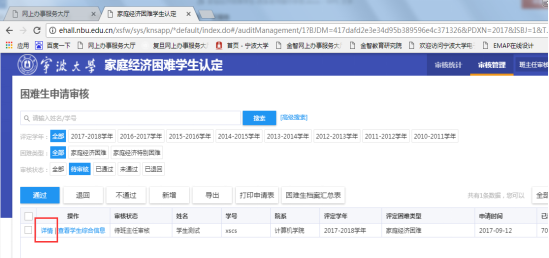 1、 学生筛选出来后,点击某学生申报记录前的“详情”按钮进入某学生家庭经济