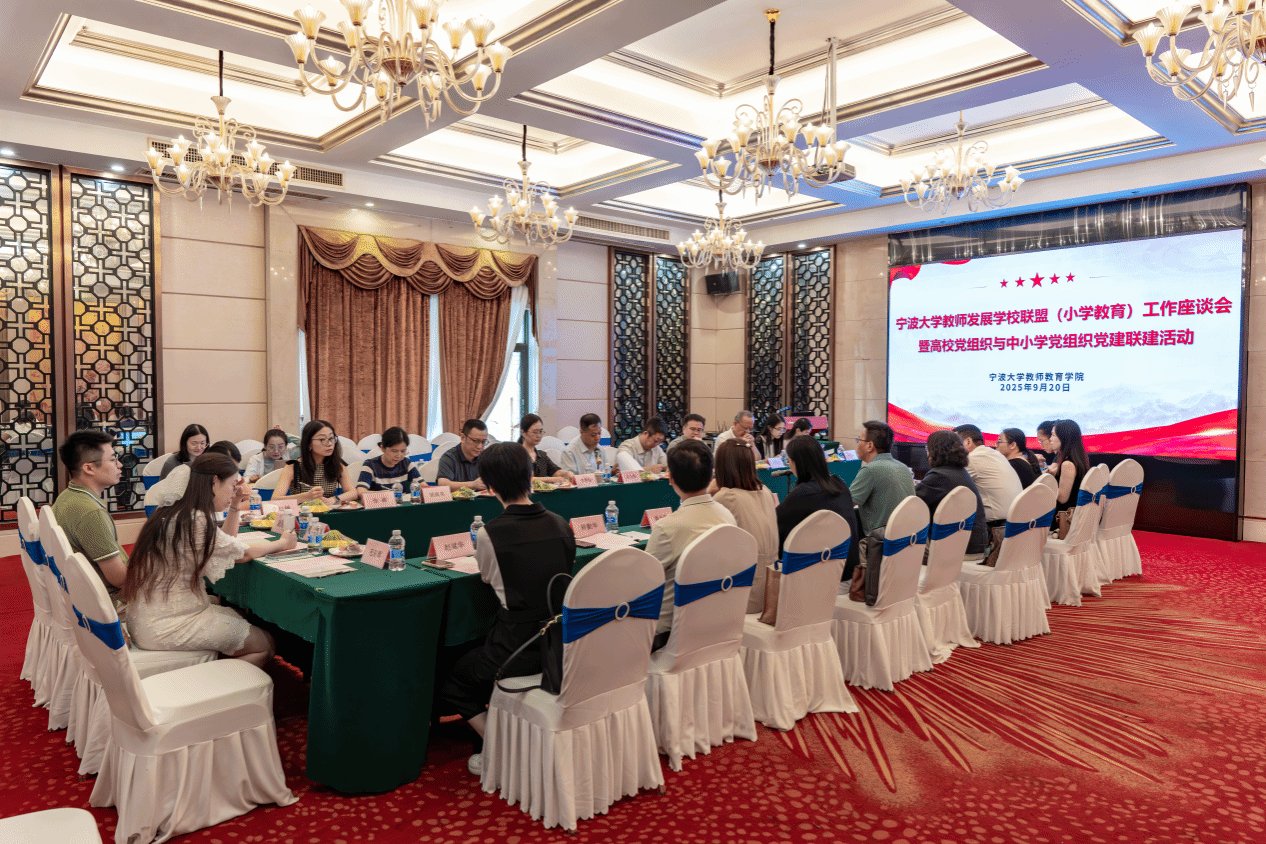 2025年9月20日,“宁波大学教师发展学校联盟(小学教育)工作座谈会暨高校党组织与中小学党组织党建联建活动”在宁大宾馆多功能报告厅顺利举行。宁波大学教师教育学院院长张宝歌,学院党委书记张林,教务处副处长、学院副院长李慧仙,教师教育系主任余利川,小学教育系主任袁恺杰,副系主任姚佩英,学院各专业教师代表以及联盟学校的书记、校长、教导主任等约三十余人参与了本次活动。双方以党建联建为纽带,围绕校际交流合作、师范生培养、教育教学实践创新等议题展开深入研讨,为后续校际党组织深度联动、协同育人奠定了良好基础。