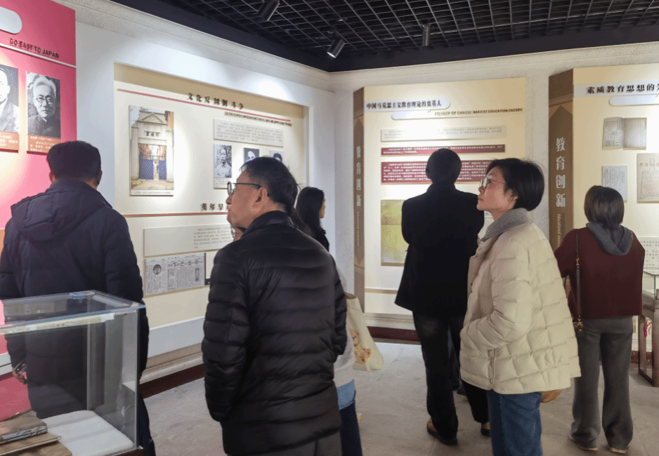 杨贤江先生是我国马克思主义教育理论奠基人,素质教育的先驱,坚定的共产主义战士。步入古朴肃穆的纪念馆,杨贤江先生“革命的一生、奉献的一生”如画卷般展开。在讲解员的深情讲述中,教师党员们不仅追忆先生筚路蓝缕的实践历程,更着重探寻其思想与新时代教育家精神的内在共鸣。当了解到先生毕生倡导的“全人生指导”理念,强调教育应立足于社会进步与人的全面发展时,教师们展开了热烈讨论,陶志琼教授深有感触:“这与‘启智润心、因材施教的育人智慧’、培养德智体美劳全面发展的社会主义建设者和接班人的要求高度契合。先生的思想超越时代,为我们今天落实‘立德树人’根本任务提供了宝贵的历史镜鉴。”王铁群老师说:“杨贤江先生提出的完全人格的几个条件——强健的体魄、充实的精神、清楚的头脑、热烈的兴趣、和乐的感情、坚强的意志、超个人的主张,在今天仍然适用,是我们所追求的育人目标。”