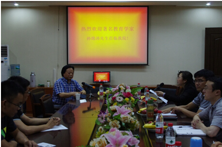 2014年6月6号下午1:15,著名教育学家、沈阳师大博士生导师孙绵涛教授应邀为我院师生做题为“‘人道’学说的反思及其对当代中国教育改革的意义”的学术报告。本次活动由孙玉丽教授主持,熊和平、刘训华等老师以及我院40多位硕士研究生参加。
