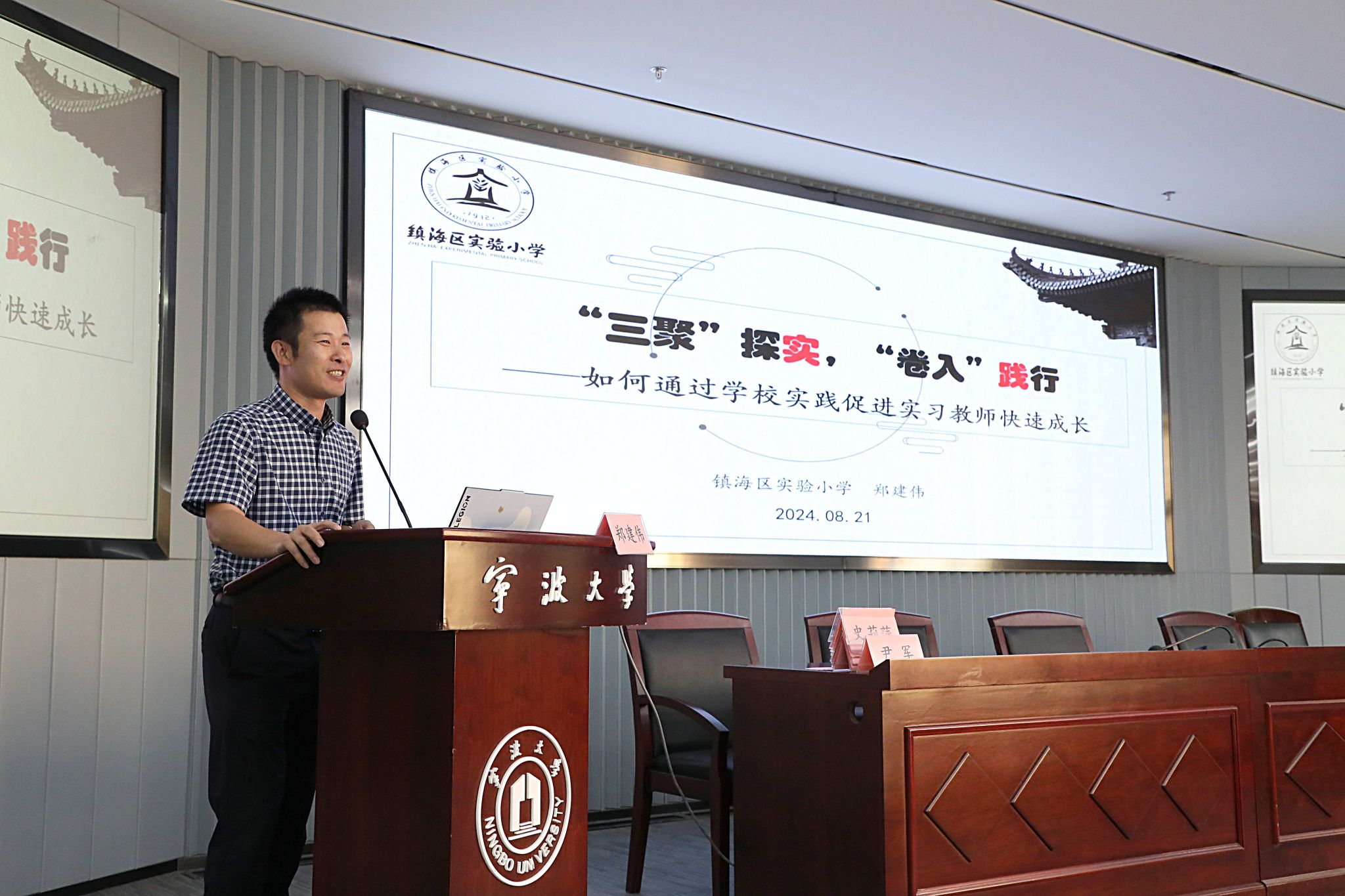 镇海区实验小学校长郑建伟以《三聚实习,“卷入”修行》为题,介绍了该校在师范实习生培养方面的创新举措。学校通过聚焦项目、实践和反馈,调动师范实习生参与教育教学的积极性,促进其快速融入教学实践。具体做法包括聚焦项目求常规、聚焦课堂求生态、聚焦评价求生长,旨在加强实习生的教育教学能力。