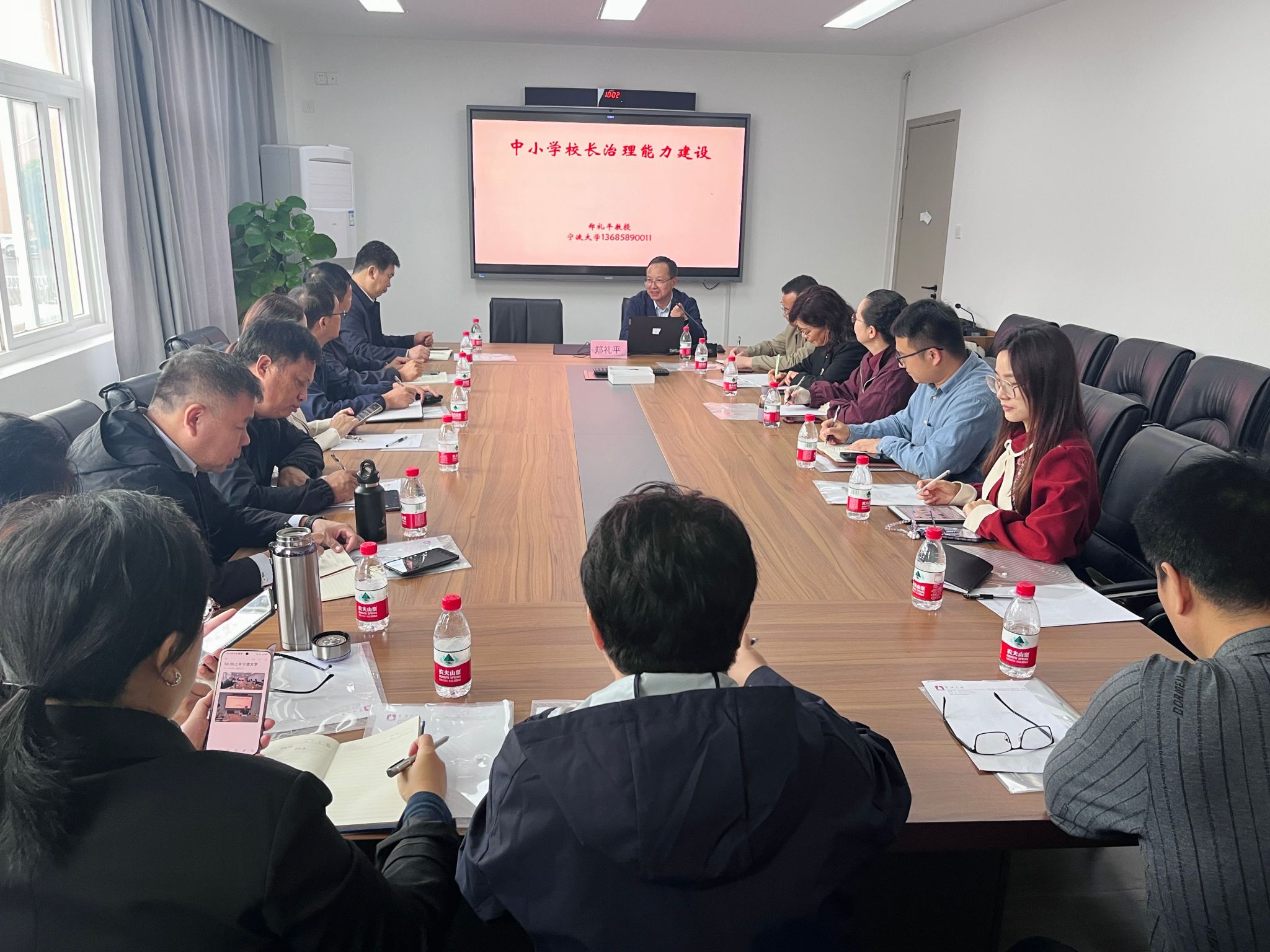 最后,老师们一同前往宁波大学教师教育学院逸夫教学楼参加学术讲座。教师教育学院郑礼平教授结合校长们的发展需求,开设了“中小学校长治理能力建设”讲座,进一步诠释了“培养什么人、怎样培养人、为谁培养人”这一教育根本问题。