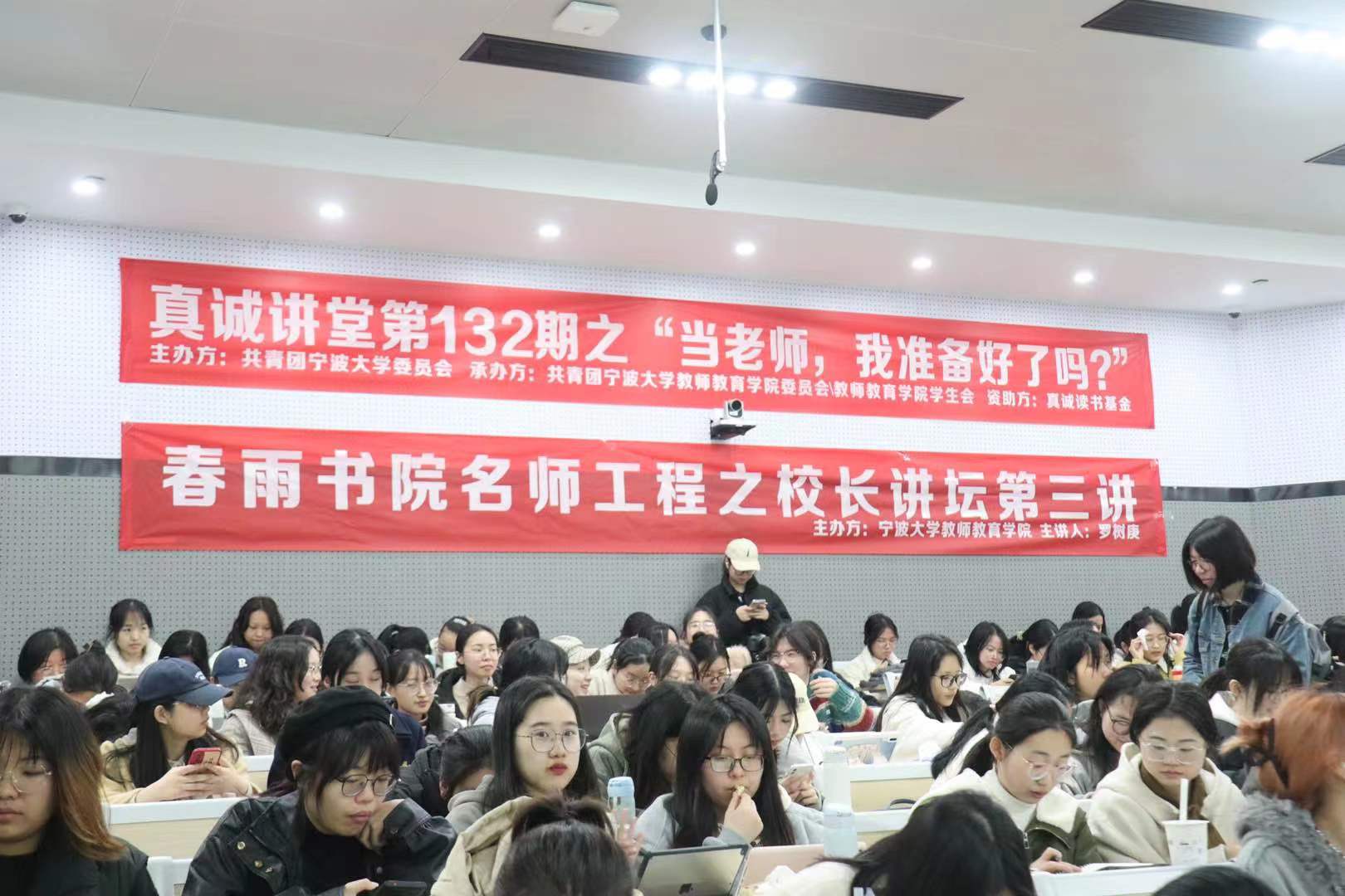 教育是国之大计、党之大计;教师是立教之本、兴教之源。为夯实专业基础,铸就伟大师魂,引领师院学子成为未来名师和名校长,3月29日,教师教育学院特别邀请浙江省特级教师、宁波国家高新实验学校教育集团校长罗树庚老师为师院学子开展春雨书院名师工程之校长讲坛第三讲——“当老师,我准备好了吗”。