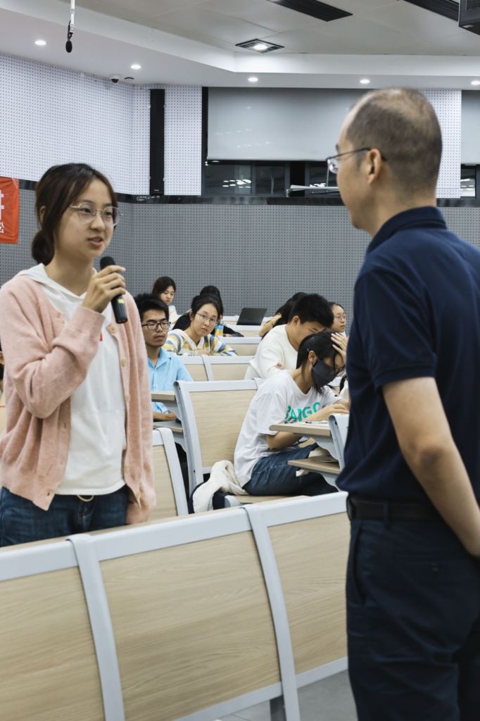 叶校长询问在场的同学是如何对待困难与问题的,同学们积极回答问题,氛围热烈。随后,他用诙谐幽默的语言以讲故事的形式分享了自己的生活经历,表现了他积极乐观的生活心态。