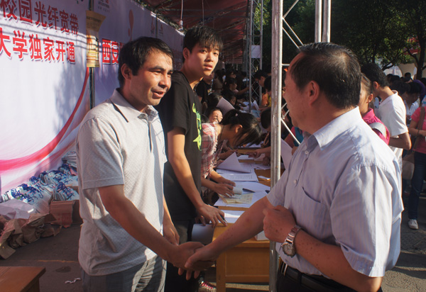 当天,校党委书记甘晖,党委宣传部部长孔祥利亲临迎新现场,认真听取了我院负责同志关于新生报到情况的汇报,并亲切慰问了迎新工作人员。