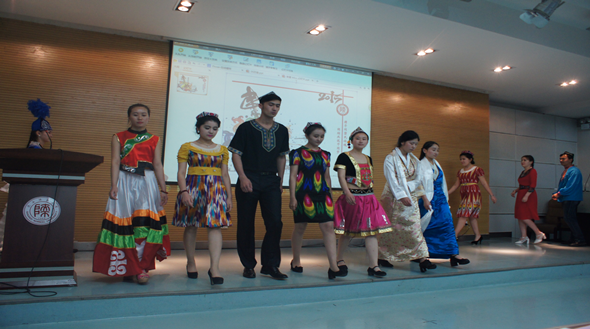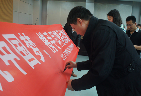 的基本情况和办学理念,高度强调民族团结进步的重要性,号召少数民族学生要通过此次活动的举办,加强各民族间的深入交流,强化中华民族认同,营造和谐校园环境。之后,校团委副书记祁斌业用激情昂扬的声音宣布民族团结活动月正式开始。随后,在开幕式上,我院维吾尔族,哈萨克族,柯尔克孜族,蒙古族,藏族、土族等15个民族的同学身着自己的民族服饰,向大家展示了少数民族特色和风情。最后,与会的领导和师生在横幅上签名留念,预祝本次“民族团结活月”取得圆满成功!