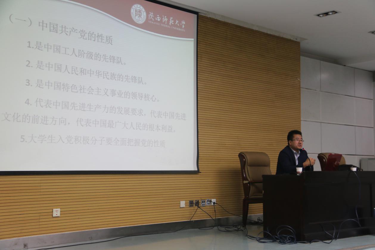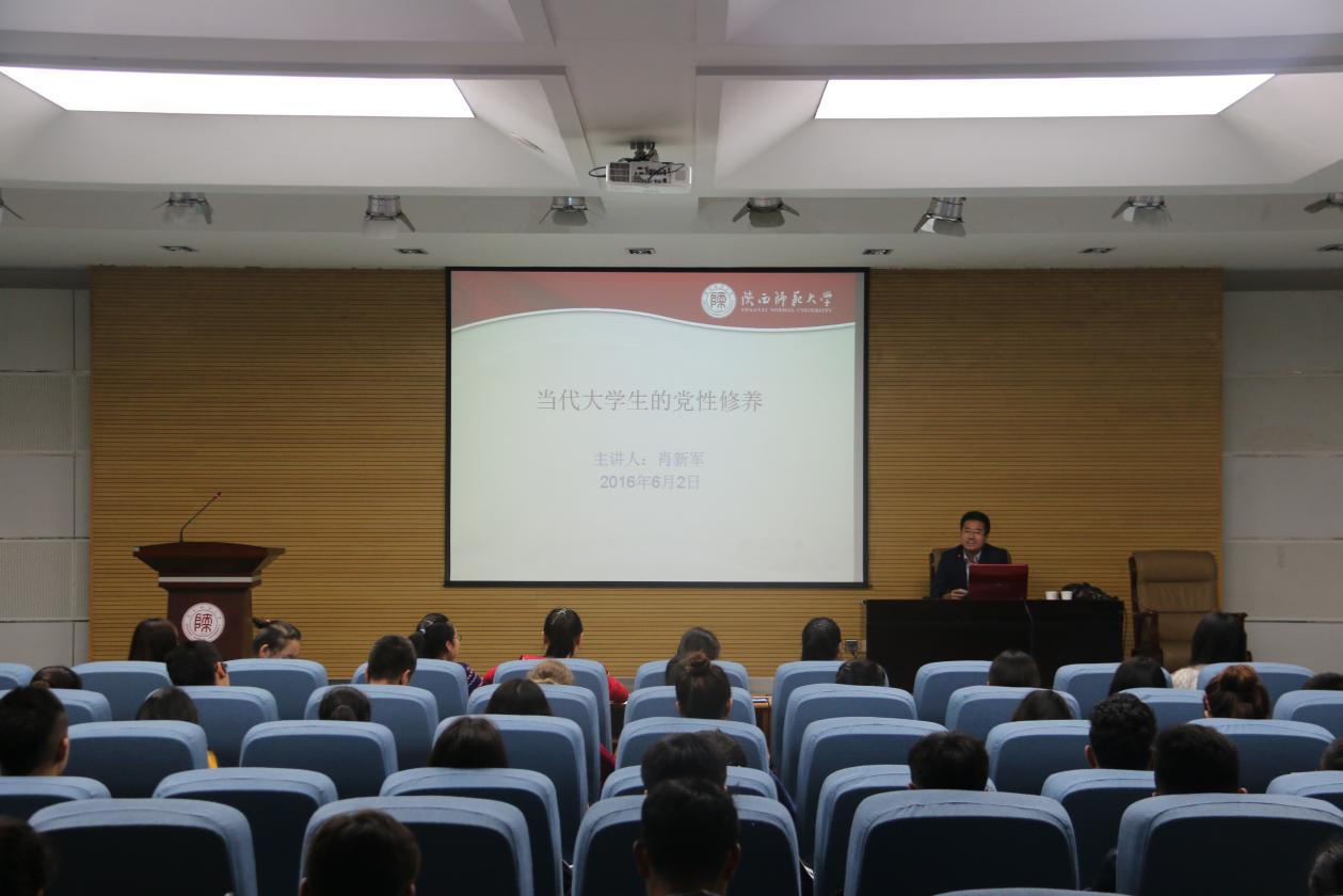 肖新军老师的讲座题目为“当代大学生的党性修养”,他从当代大学生的特点与使命、中国共产党的性质和宗旨、当代大学生和中国共产党的关系以及当代大学生如何加强党性修养等四个方面做了详细的阐述。讲座过程图文并用,以科学的调查报告分析了当代大学生的特点,并希望同学们能够牢记当代大学生的责任和历史使命,积极争取早日加入中国共产党,深入了解党的性质和宗旨,投身到中国特色社会主义事业的建设当中,全心全意为人民服务。