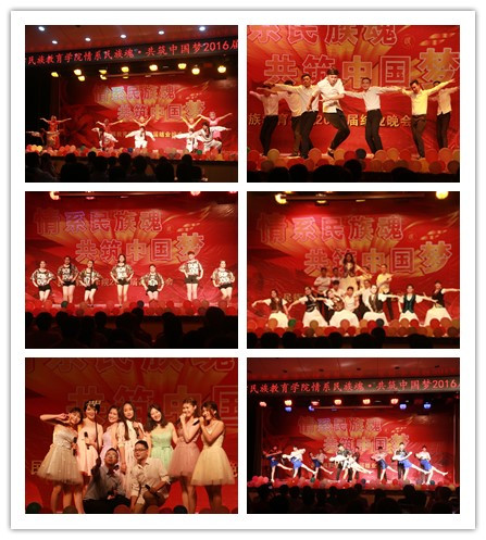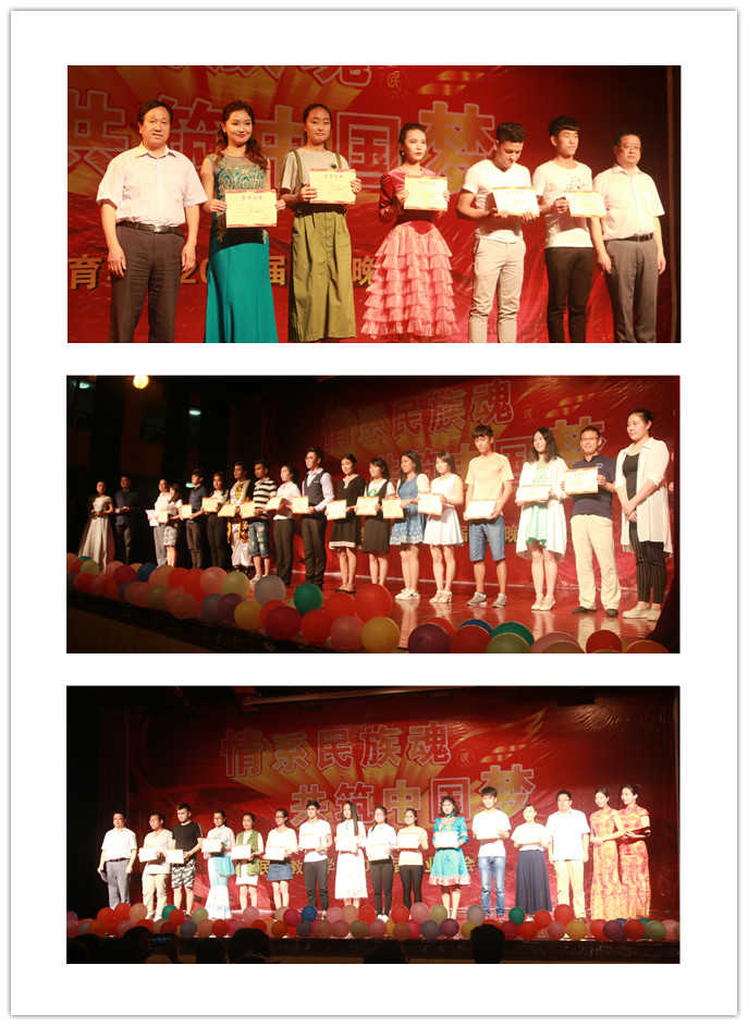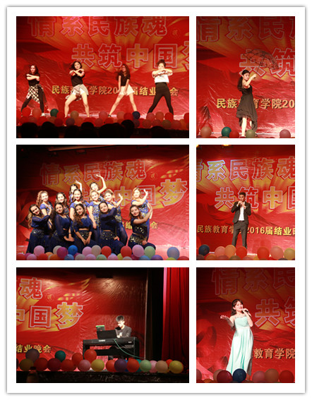 首先,晚会在一曲欢快的塔吉克族舞蹈《山鹰之邦》之后拉开帷幕。本次晚会分为两部分,第一部分为表彰环节,重点表彰了在2015—2016学年度中我院学习成绩优异,综合表现突出的优秀学子、优秀学生和优秀学生干部,以及在2016年民族团结活动月中积极参加各类活动、表现优异的学生代表。我院党总支书记郑生忠一一宣读了表彰决定,学校副校长冯旭东、校团委副书记戴璐、学院党总支副书记窦文阳依次上台为获奖学生代表颁奖并合影留念。晚会第二部分由我院各班学生代表依次表演了14个精彩节目。预科同学带来的舞蹈《Just one last dance》、《拉丁赋格》、《Bang bang bang》、《绽放》、《can’t stop dancing》展示了当代青年学子朝气蓬勃、积极进取、昂扬向上的新形象;民硕一班同学带来的《小幸运》用七种语言诉述了年轻的懵懂和对匆匆一年时光的留恋和不舍,预科和民硕同学带来的吉他弹唱《同桌的你》、《爱我别走》将晚会推向高潮,使我们在动感十足的舞蹈和音乐中感受了一股青春律动的气息和对理想的执着追求;哈萨克族同学用冬不拉弹奏的《天籁之音》、以及预科学生用古筝和钢琴弹奏的《勇士出征》以及哈萨克族歌曲串烧,展示了我院少数民族同学能歌善舞、多才多艺的一面,也向我们展示了各少数民族独有的民族风采和异域风情;朗诵《归魂民族情,源根师大梦》以及情景剧《我的预科》等节目以别样的形式和新颖的设计,表达了对预科一年时间的师生情、友情的种种不舍之情,以及勇敢追求梦想、积极向前的坚定信心,引起全场的共鸣和热烈掌声。最后,晚会随着维吾尔族同学的一曲《舞动心灵》顺利落下了帷幕。