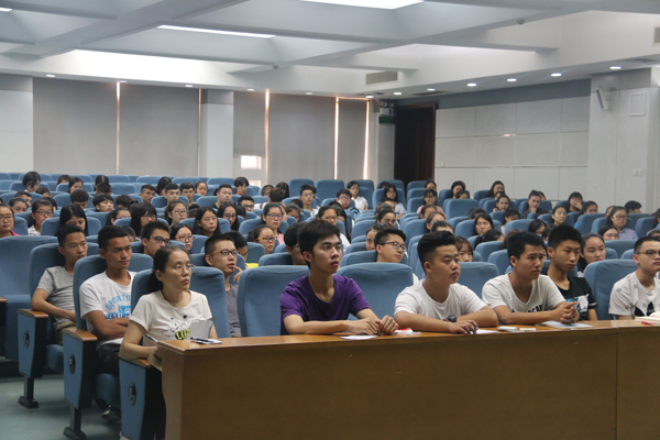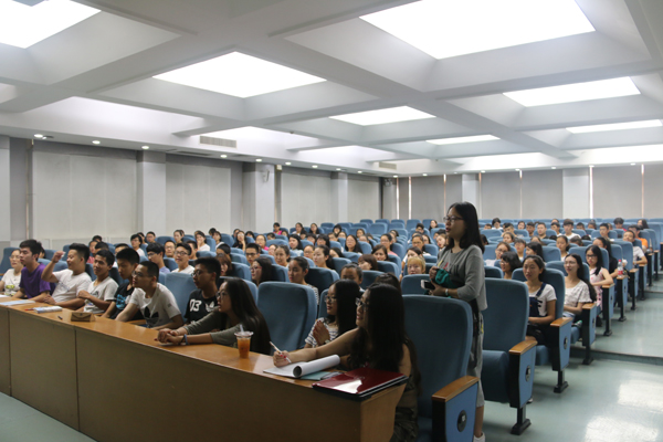 8月31日上午8:00,我院2016级科预科新生入学教育系列讲座第二讲在崇鋈楼学思堂开讲。本次讲座由我院预科英语教师唐涛老师主讲,讲座题目为《语言学习和运用》。旨在让学生树立正确的学习目的,引导学生学会正确的学习方法,激发学习动力和兴趣。我院2016级预科专职辅导员热依木、兼职辅导员蒙桂芳、王龙宇和370名全体预科新生参加了此次讲座。