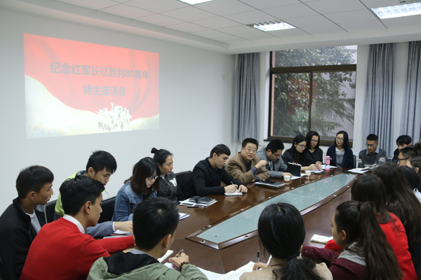 10月25下午,我院在六附楼三层会议室召开纪念红军长征胜利80周年师生座谈会。学院院党总支书记郑生忠、党总支副书记窦文阳、团总支书记萨仁娜、专职辅导员热依木·努尔麦麦提、兼职辅导员王洁、蒙桂芳、刘雅丽以及部分学生党员代表、学生干部代表和少数民族学生代表参加了座谈交流会。座谈会由副书记窦文阳主持。