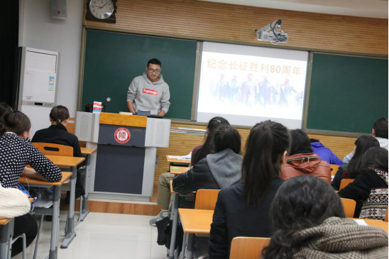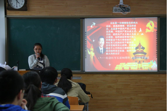 当天下午,我院预科三班同学也在9703教室由团支书王佳傲带领,学习并观看用沙画形式讲述长征的精彩视频,以及从红军开始长征至长征胜利的影像资料,让大家共同了解长征精神,最后同学们分享了自己对于长征精神的感悟,交流了各自的心得,大家颇有收获。
