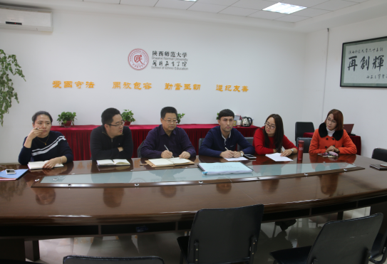 11月14日下午2:30,在雁塔校区教学六附楼305会议室,我院学工组召开本学期第四次学生工作会议。学院党总支书记郑生忠、副书记窦文阳、团总支书记萨仁娜、专职辅导员热依木、兼职辅导员刘雅丽和新疆内派服务管理教师迪丽努尔和赵雪艳参加了会议。