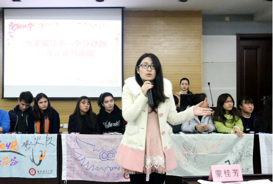 首先蒙桂芳老师为竞赛致辞,希望通过我院举办的此次宿舍安全知识竞赛活动,加深同学们对宿舍、校园安全知识的了解,增强理论知识运用于实际生活的能力,搭建与学校安全问题的交流平台,培养同学们的安全意识和自我保护能力。