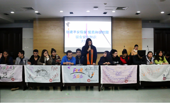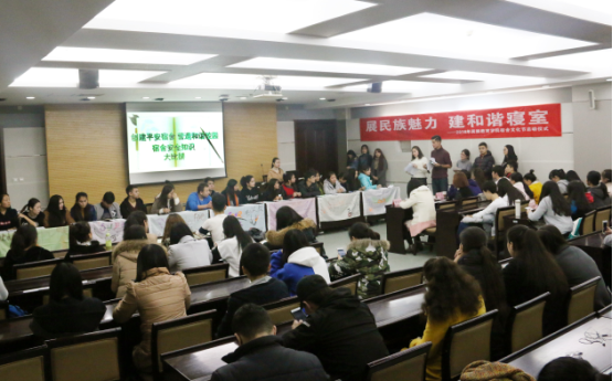 11月27日晚7时,我院宿舍文化节活动第三篇章“创建平安宿舍,营造和谐校园”宿舍安全知识竞赛在我校崇鋈楼思齐堂如期举行。此次宿舍安全知识竞赛以“增强安全意识,创建平安寝室”为主题,选取贴近学生实际生活的题目以知识大比拼的方式进行比赛,我院新疆内派服务管理教师迪丽努尔、兼职辅导员蒙桂芳以及学生会主席团白日、吴晓婧、苏伊雷、伊卜拉伊木江·阿里甫担任本次竞赛的评委。我院预科各班学生代表参加了此次竞赛,竞赛由土力发尔·吐尔干江、麦菊旦·吐尔逊两位预科班同学主持。