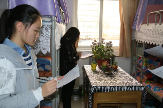 在检查过程中,学生会成员及学生宿舍代表在注重宿舍安全、卫生的同时,也着重对宿舍文化建设的情况进行了评估,我院涌现出了很多装饰优美、氛围良好的宿舍,有的自制字画挂在墙上,有的在墙上贴上漂亮的墙纸,有的宿舍把富有民族特色的照片贴在了墙上,有的宿舍把每个人的职业规划挂在墙上,朴实的宿舍装饰融入了宿舍同学们的心血,也体现了宿舍同学之间浓厚了友谊。各个宿舍从内务整理到主题设计,从门面装饰到成员资料,每个角落都一尘不染,各个细节都布置到位,很多宿舍也都装饰出了自己的个性,自己的风格。