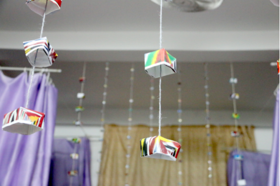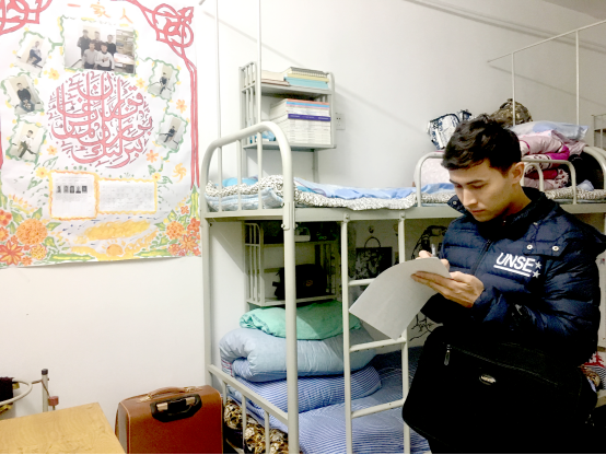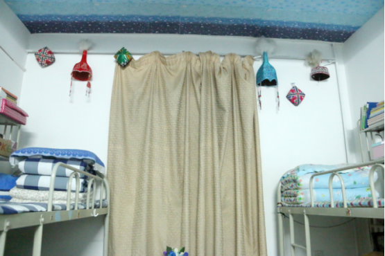 评审组首先来到12号男生学生宿舍楼进行观摩,接受观摩的部分宿舍代表向大家介绍了其寝室的布置方法及亮点,个别男生宿舍将寝室将墙壁一角制作成愿望墙、文化天地栏等,有的还贴了各式的壁纸,铺上了各样的地毯,使寝室成为“星球世界”、“运动天地”等,整洁干净、通风良好、富有创新的男生宿舍使各位评审老师刮目相看。接着评审组来到2-3号女生宿舍楼进行观摩,女生宿舍与男生宿舍文化差异甚大,一些手工艺妆品、本土文化特色充满温馨的寝室,废弃饮料瓶纸做的书架、小纸帽做成的吊链,宿舍门上的贴花和装饰都充满民族情怀。从这些宿舍装饰中,流露出同宿舍不同民族成员之间浓厚的感情和同窗友谊。