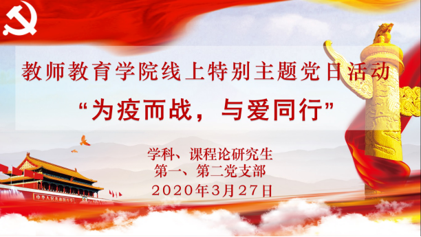 3月底,教师教育学院学科、课程论研究生第一、第二党支部61位同学在线召开“为疫而战,与爱同行”主题党日活动。