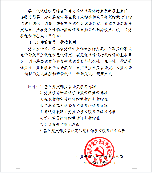 中共宁波大学委员会办公室关于做好年度基层党组织星级评定、民主评议党员暨党员锋领指数考评的通知