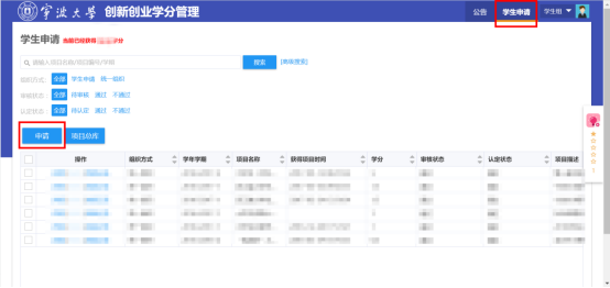 2. 进入“创新创业学分管理”