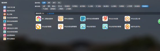 2.登陆后点击搜索栏,选择团委服务-学生科研成果管理