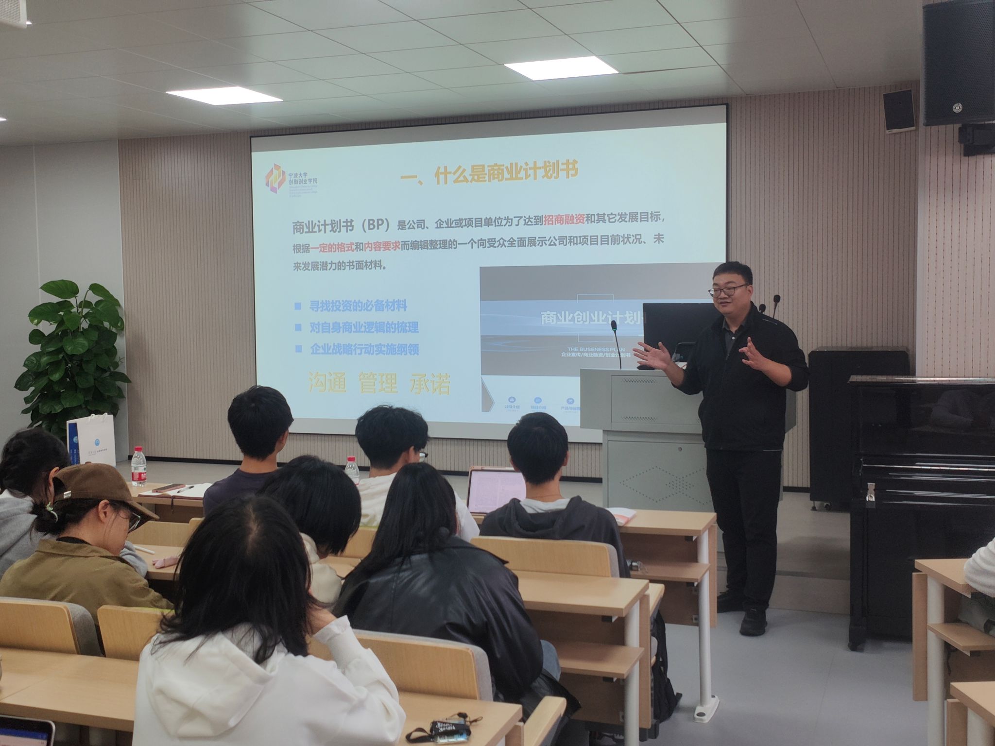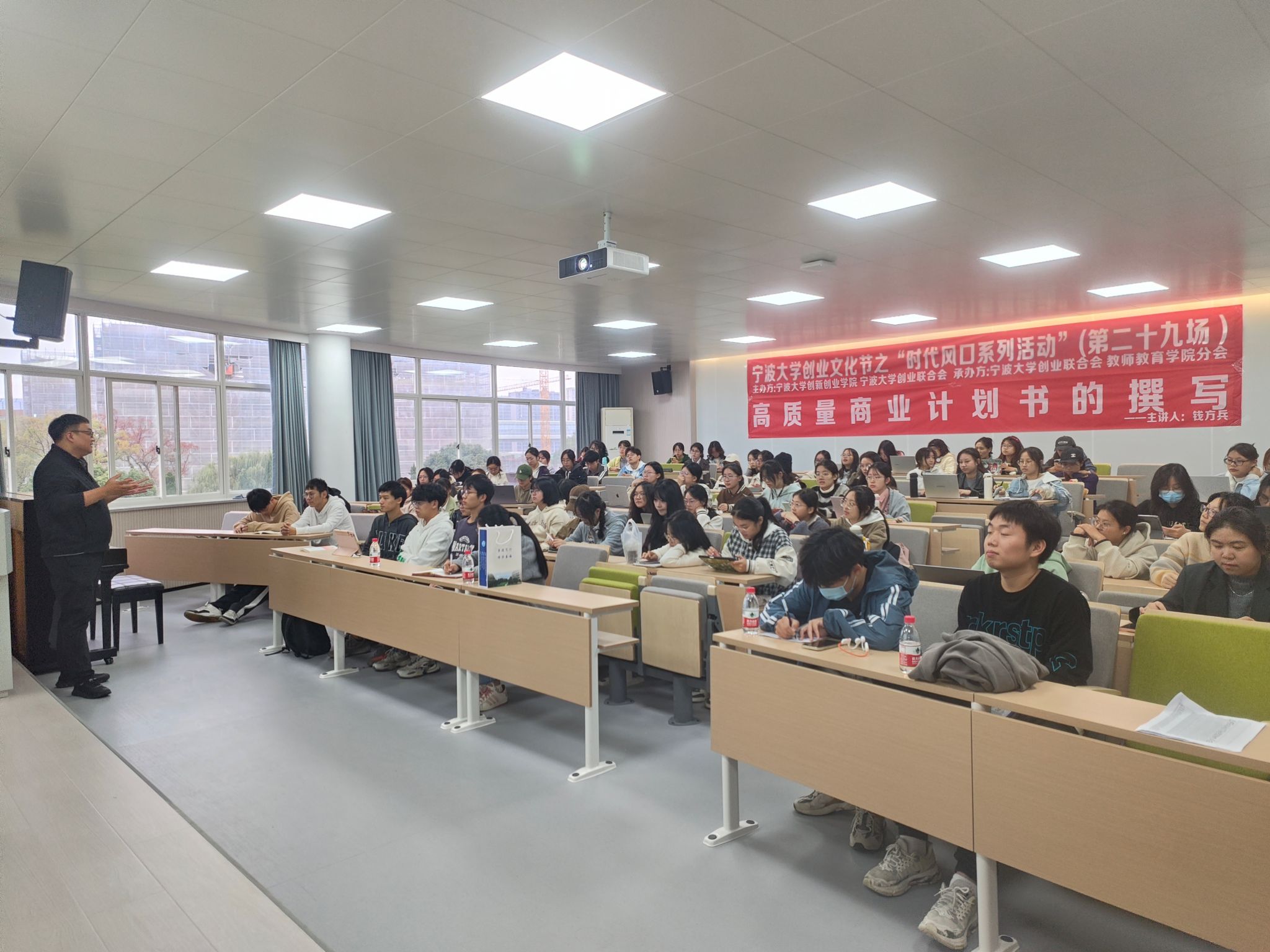 2023年11月10日,宁波大学创业文化节之“时代风口”系列活动第二十九讲在宁波大学西区实验楼313开展。此次活动由宁波大学创新创业学院、宁波大学创业联合会主办,宁波大学创业联合会教师教育分会和宁波大学教师教育学院承办,活动面向学院所有对创新创业感兴趣的本科在校生,旨在通过介绍撰写商业计划书的方法,让同学们更加清楚地了解商业计划书的内容和重点,指出并解决同学们撰写商业计划书时存在的问题,提升同学们撰写商业计划书的能力,提高商业计划书的质量。