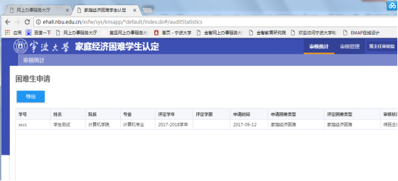 2.1.5 家庭经济困难学生认定申请表打印及导出
