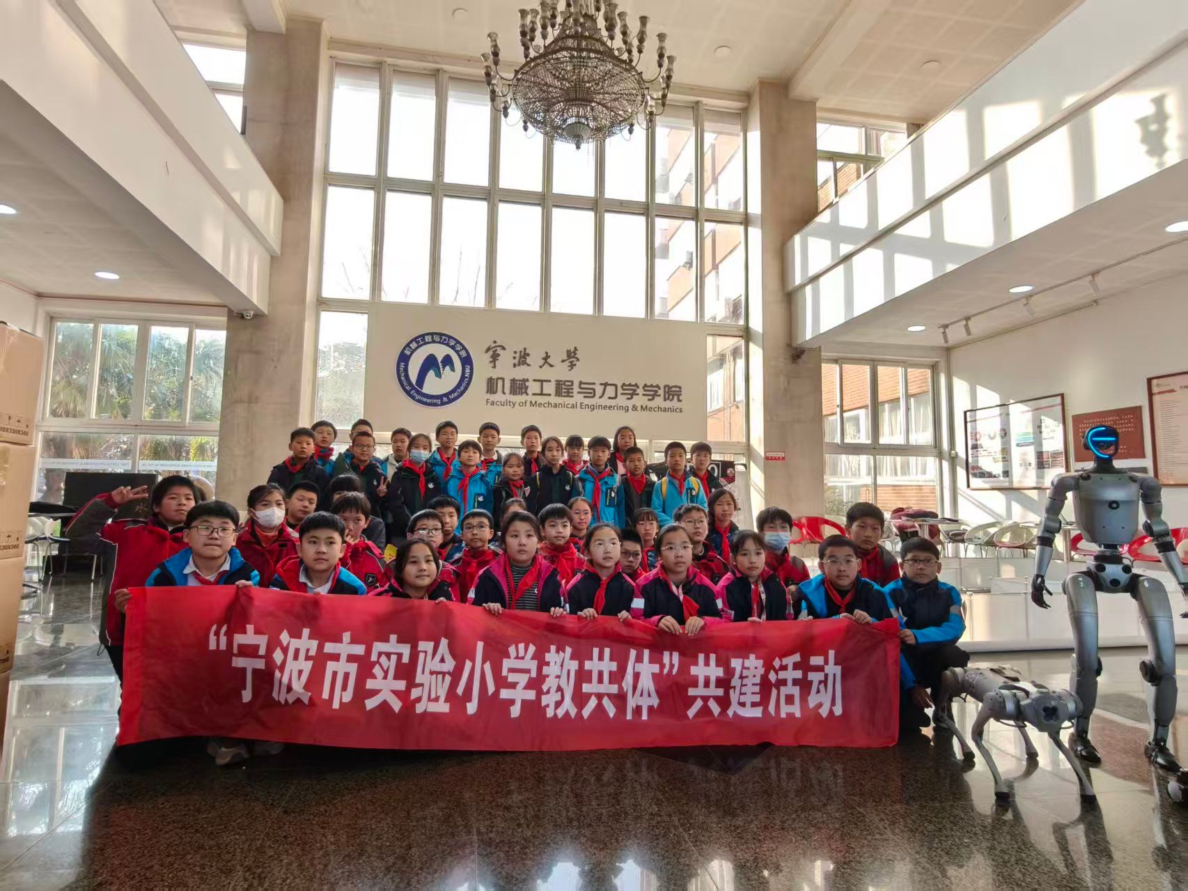 12 月 18 日下午 1 点,实验小学 45 名师生怀揣着对科学知识的渴望,走进宁波大学校园,开启了一场集知识探索、实践体验于一体的研学之旅。本次活动旨在搭建校地教育桥梁,让学生近距离感受大学文化氛围,激发科学探索热情。