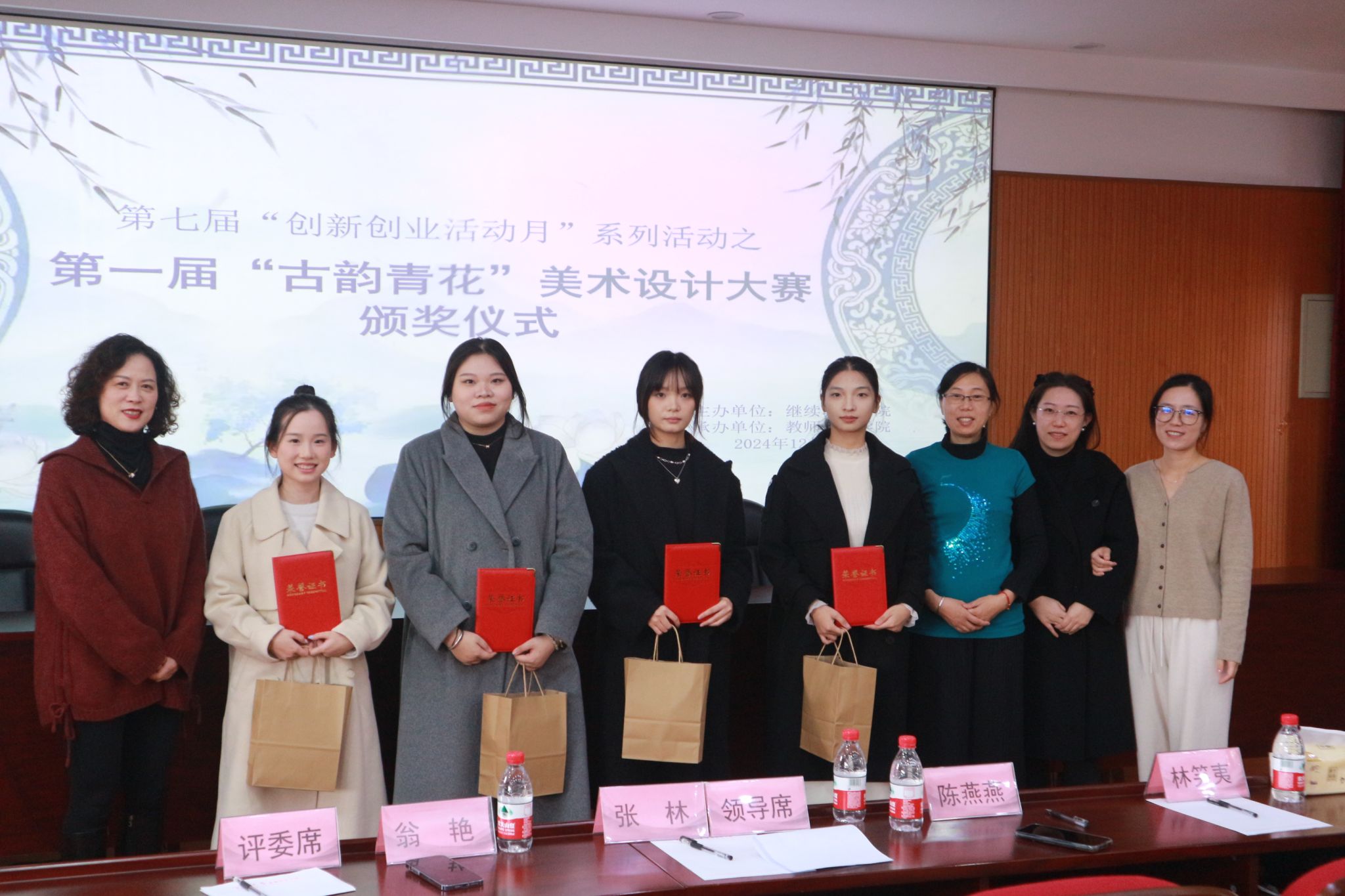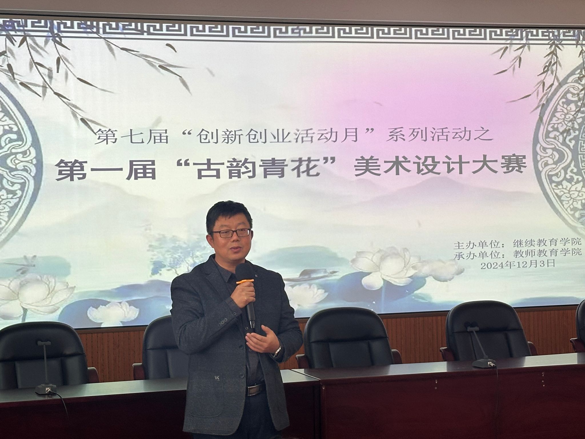 在12月3日,这个充满创意与艺术气息的下午,首届“古韵青花”美术设计大赛颁奖仪式在西区教育楼隆重举行。本次大赛由宁波大学继续教育学院主办,教师教育学院精心承办。