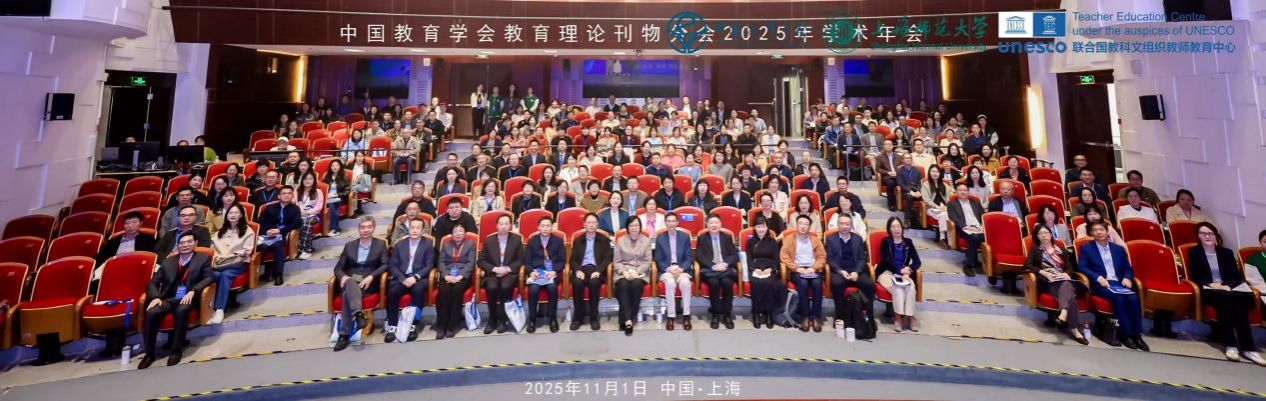 2025年11月1日,中国教育学会教育理论刊物分会2025年学术年会在上海举行。来自全国189家单位的近300位专家学者和期刊代表齐聚一堂,深入学习贯彻党的二十届四中全会精神,围绕“教育强国建设视野下的知识生产:挑战、机遇与变革”主题深入研讨,为教育理论创新与教育强国建设注入思想动能。《宁波大学学报(教育科学版)》常务副主编焦岚教授,宁波大学教师教育学院副院长刘希伟教授、李松楠、段俊吉、张萌等青年教师,以及《宁波大学学报(教育科学版)》编辑部周密副教授、赵蔚副教授、徐琼副教授参加了本次年会。
