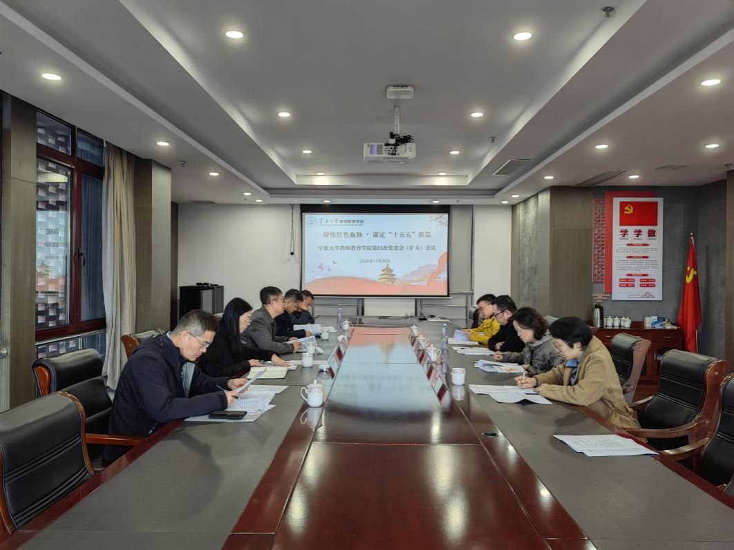 为传承红色基因、凝聚思想共识,精准擘画“十五五”发展蓝图,11月28日,宁波大学教师教育学院以“红色教育+专题研讨”模式,开展“赓续红色血脉・谋定‘十五五’新篇”为主题的党委会(扩大会议)暨红色教育活动,学院党委书记张林、院长张宝歌及全体党委委员、各系部负责人全程参与。