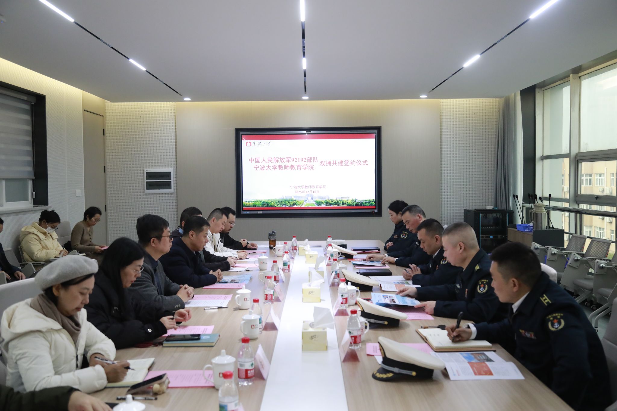 2025年12月16日上午,中国人民解放军92192部队与宁波大学教师教育学院在宁波大学教师教育学院教育楼413会议室隆重举行双拥共建协议签约仪式。此次签约标志着双方将携手开启拥军共建、协同育人的新篇章。