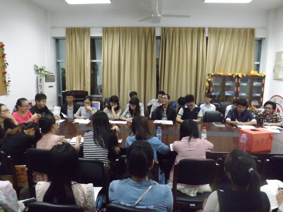 9月26日晚,我院2013年研究生新老成员见面会在叶耀珍搂307室顺利召开。会上,研会主席团认真梳理了12级研会干事的成长过程,各部部长对研会上半年工作进行了总结,并制定了下半年活动安排,在开展常规性工作的同时,力求有所创新!最后研会执行主席赵旭亚对研会近期工作事务进行了规划和任务分配,主席团的精彩发言和各部部长的诙谐“吐槽”,引来现场阵阵掌声,会议在愉悦的气氛中结束。