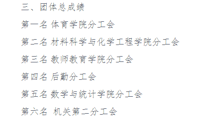最终,教师教育学院分工会以团体总成绩第三名的佳绩,圆满结束了本次运动会的征程。