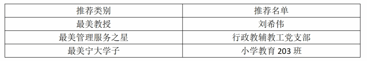 根据校党委宣传部下发的《关于开展宁波大学2024年“最美宁大人”系列评选活动的通知》精神,经申报材料报送和学院党政联席会议研究,现将拟推荐名单公示如下: