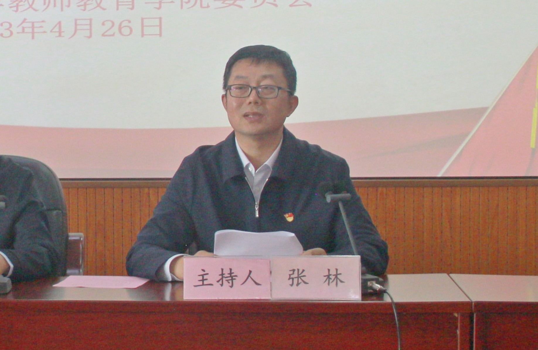 4月26日,教师教育学院召开关于深入开展学习贯彻习近平新时代中国特色社会主义思想主题教育全体师生党员动员大会,全面部署主题教育相关工作。学院党委书记张林、学院院长张宝歌及学院党政领导班子成员、学院全体师生党员参加了会议。