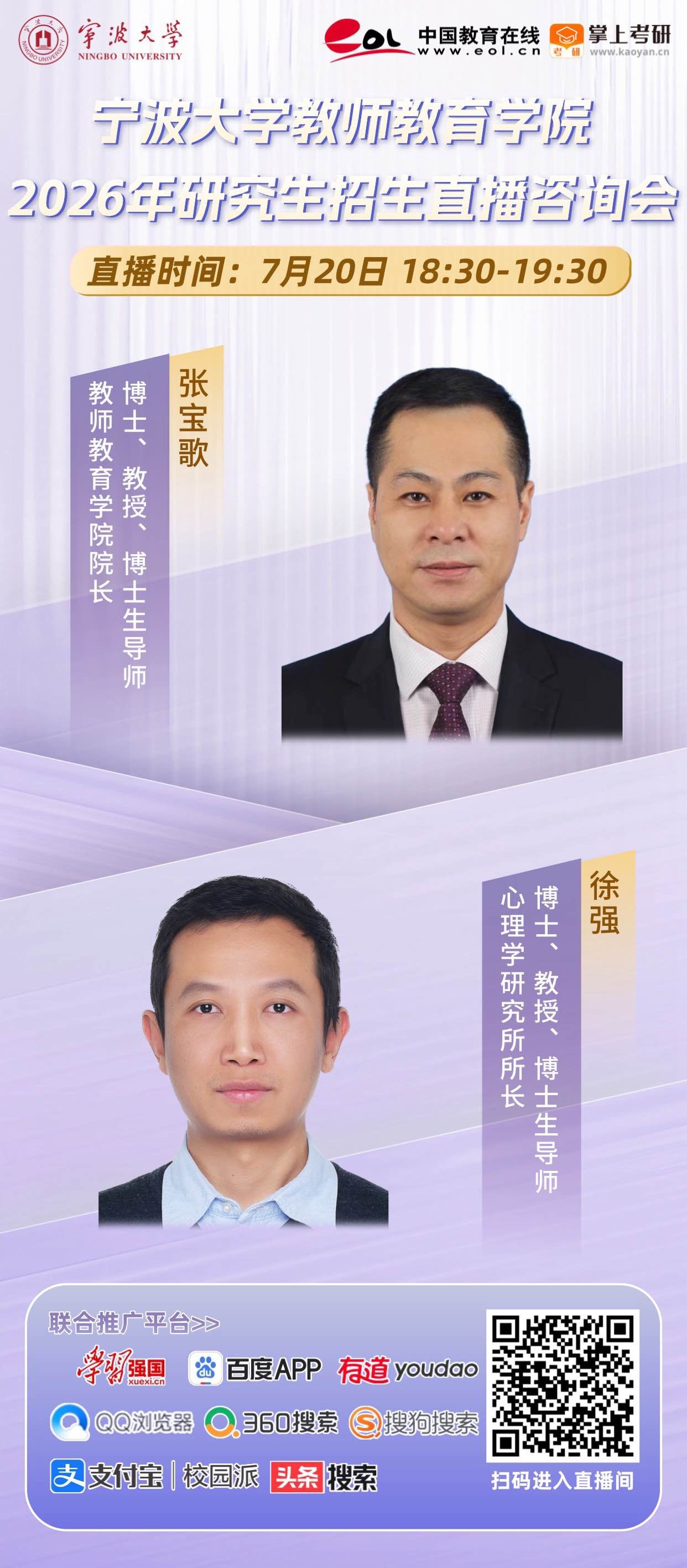 宁波大学教师教育学院2026年研究生招生直播咨询会(7月20日晚6:30)