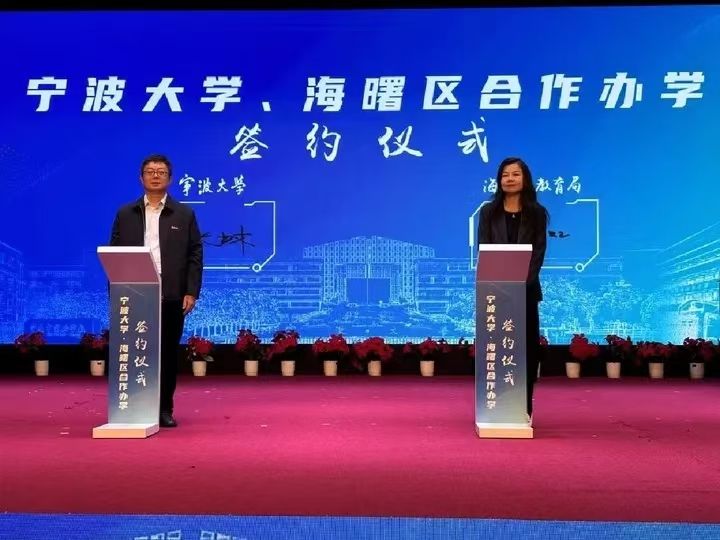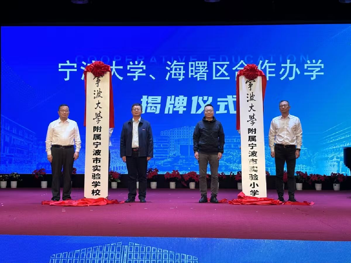为充分发挥教师教育学院服务地方经济社会发展的职能,进一步推进宁波大学“双一流”建设,10月25日下午,宁波大学与海曙区合作办学启动暨宁波大学附属宁波市实验学校、宁波大学附属宁波市实验小学(下称“附属实验学校”)揭牌仪式在海曙区宁波市实验学校礼堂举行。宁波大学党委委员余怡春,海曙区政府党组成员、副区长黄列出席。