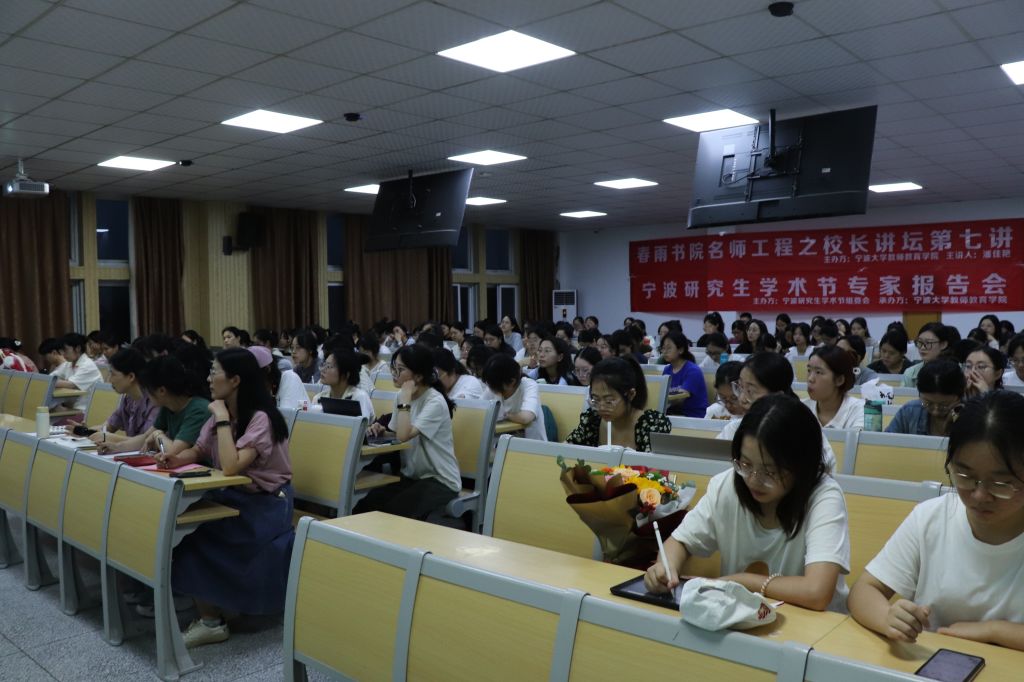 最后,潘校长则介绍了其任职校长的所在学校——宁波市镇海应行久外语实验学校,作为整场精彩讲座的收尾。应行久外语实验学校以“海润”为办学理念,强调如春雨润物般的“润”在学生成长发展过程中春风化雨潜移默化的作用。介绍完该学校的办学情况和镇海区众多学校欣欣向荣的发展现状之后,在讲座的尾声,潘校长殷切希望我院大四学生在实习时选择镇海区的众多优质学校,以提升自己的能力,不断雕琢自身这块璞玉,如切如磋,如琢如磨,向着更高的目标笃行不怠。