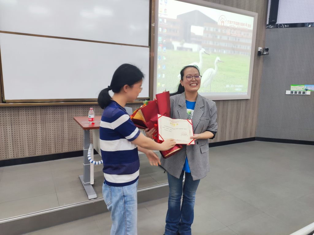 在本次活动最后,俞春丽老师接授了宁波大学春雨书院颁发的鲜花及讲课证书。在同学们热烈的掌声中,本次讲座圆满结束。