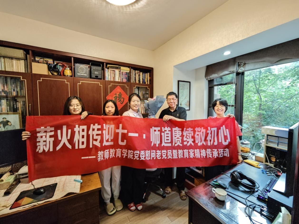 时值七一,为追寻精神根脉,传承师道薪火,怀揣对“五老”的崇高敬意与求索渴望,2025年6月27日,宁波大学教师教育学院党委携暑期社会实践“以声传史”小队探访老党员、老教师楼松林同志。这不仅是一场温暖的慰问,更是一次向历史深处的虔诚致敬,一次对教育家精神的庄重寻根。