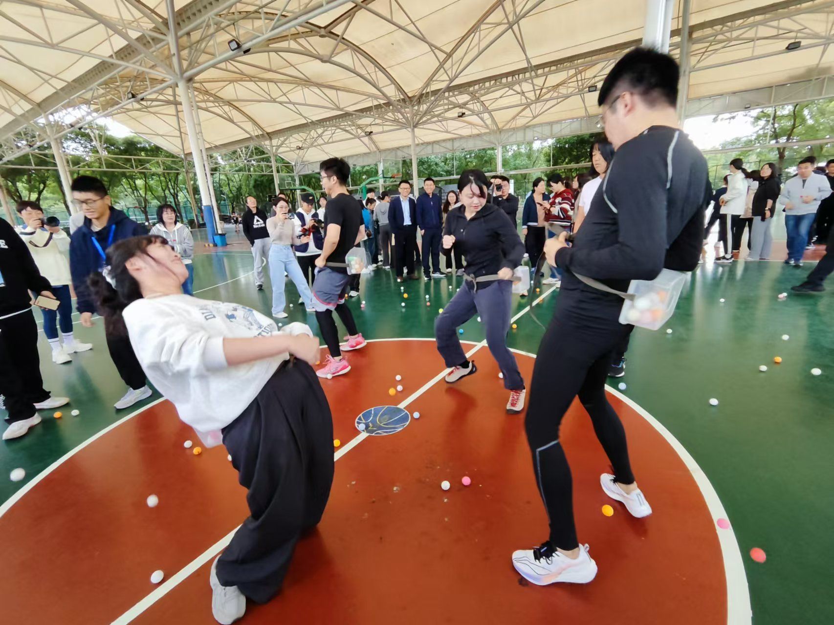教师教育学院分工会由18名教职工组成的太极拳展演分队为校运会开幕式带来了英姿飒爽的太极拳表演,参演教工服装统一、动作整齐,配合默契,充分展现了师院教职工精神抖擞的精神风貌。由30多名教职工组成的趣味运动会参赛队分别在“蛟龙出海”、“抢种抢收”等集体项目中参赛,在运动赛场上,老师们暂时抛开了工作重负,焕发出青春活力。在“抢种抢收”项目中,展现了速度与耐心的和谐统一;在“蛟龙出海”项目,考验了彼此间的默契与团队协作,肩并肩,手挽手,他们齐声高呼着口号,步伐一致地向前推进;在8*50米接力跑中,学院短跑队的8名队员通过加油打气、挑战极限、奋力冲刺,取得了该项目我院的历史最好成绩。全体老师通过团队配合、相互鼓励,在赛场上形成了良好的拼搏氛围,赛出了友谊、赛出了风格。通过趣味运动会,进一步加深了学院教职工之间的感情,架设了学院不同基层组织间教工沟通的桥梁。